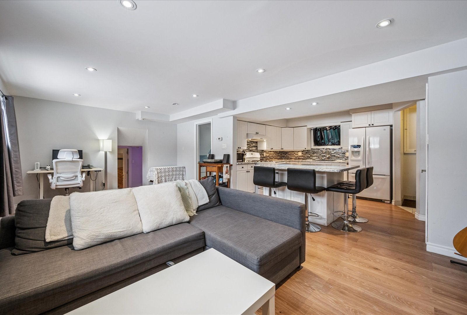Welcome to 306 Shelley Drive in Kitchener! This spacious, 1-bedroom + den lower-level unit is over 900 sqft, clean, modern, and carpet-free! The open-concept layout includes an eat-in kitchen equipped with a gas range, dishwasher, and a French-door refrigerator, along with an island and breakfast bar. The unit features a large living room with bright windows for plenty of natural light, a 4-piece bathroom, and a generously sized bedroom with three extra-deep closets for ample storage. The adjacent den can be used as a home office, TV room, or bonus space and also has plenty of closet storage. Additional conveniences include in-suite laundry, a separate entrance, a private deck, and one parking space. This unit is located across from Wilson Park, near the Kingsdale Community Centre, LRT, transit, and is just a short drive to Fairway Road, Fairview Park Mall and the Conestoga Parkway. Available May 15th. Landlord takes care of outdoor maintenance. (The tenant will not have access to the backyard or garage.) Get in touch for more info!